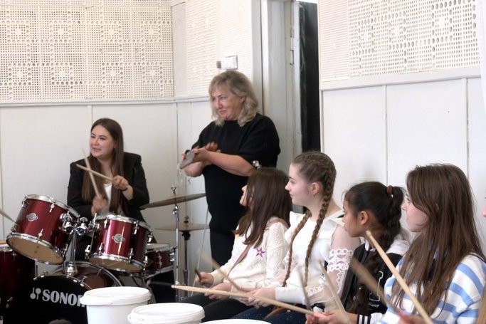 Учениця Харківської музичної школи Аміна Маметова вперше спробувала грати на барабані. Пояснила, що окрім нового досвіду отримала можливість знову відвідати очні заняття.
