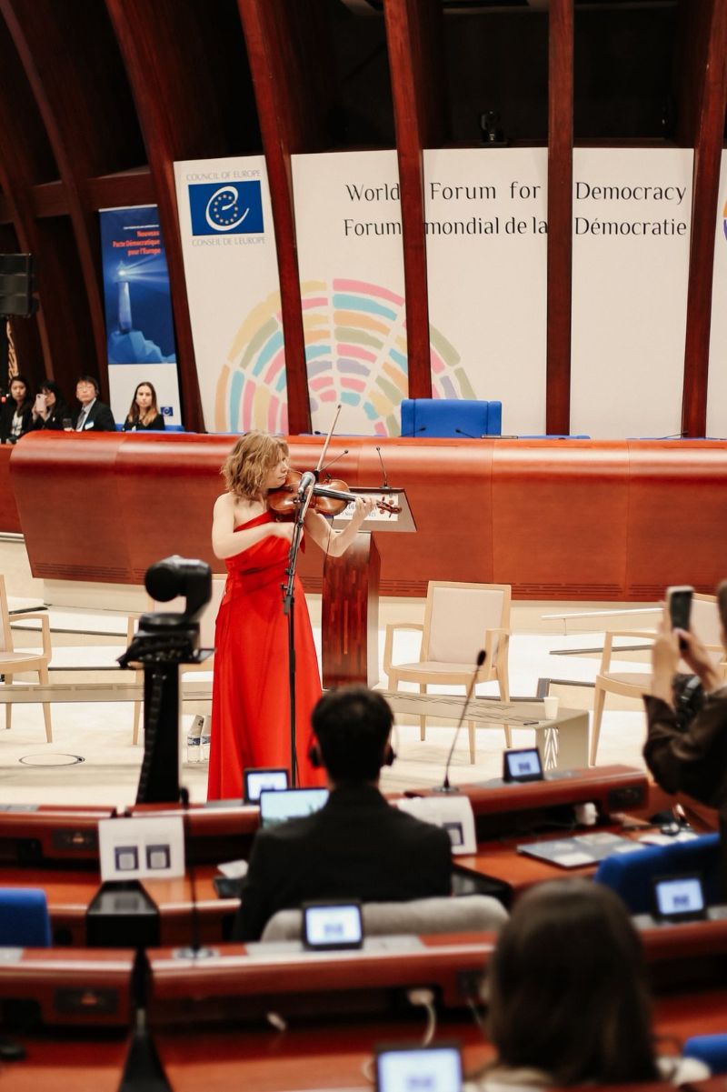 У Раді Європи у Страсбурзі під час церемонії відкриття Світового форуму демократії / World Forum for Democracy відбулися дві українські культурно-мистецькі події – відкриття фотовиставки мультимедійного проєкту «Спроможні / Empowered» та виступ скрипальки Богдани Півненко.